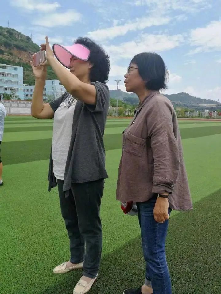 这几张照片是2018年孙少兰老师去华坪女中演出歌剧《江姐》时拍到的花絮。孙少兰是丽江人,著名演员,也是《江姐》的主演。那天演出结束后,孙少兰在拍摄校园风光,张桂梅小心翼翼地靠近孙少兰,把头靠在了她的肩上。