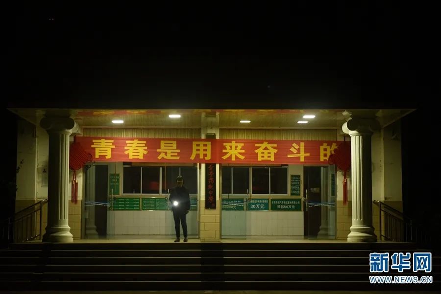 凌晨5点多,张桂梅来到教学楼前,开门、亮灯。(新华网 李宁摄于2019年10月17日)