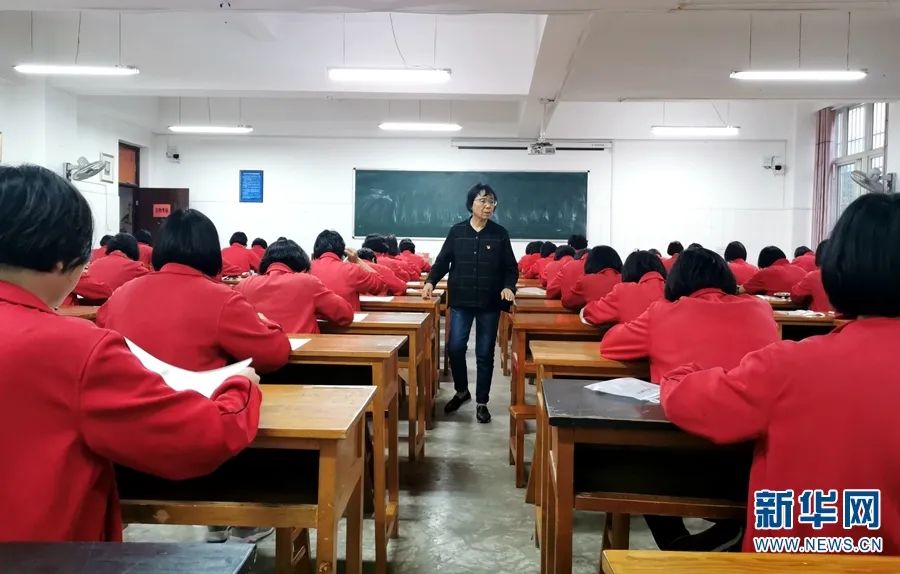 张桂梅在巡查考场。(新华网 赵普凡摄于2019年10月17日)