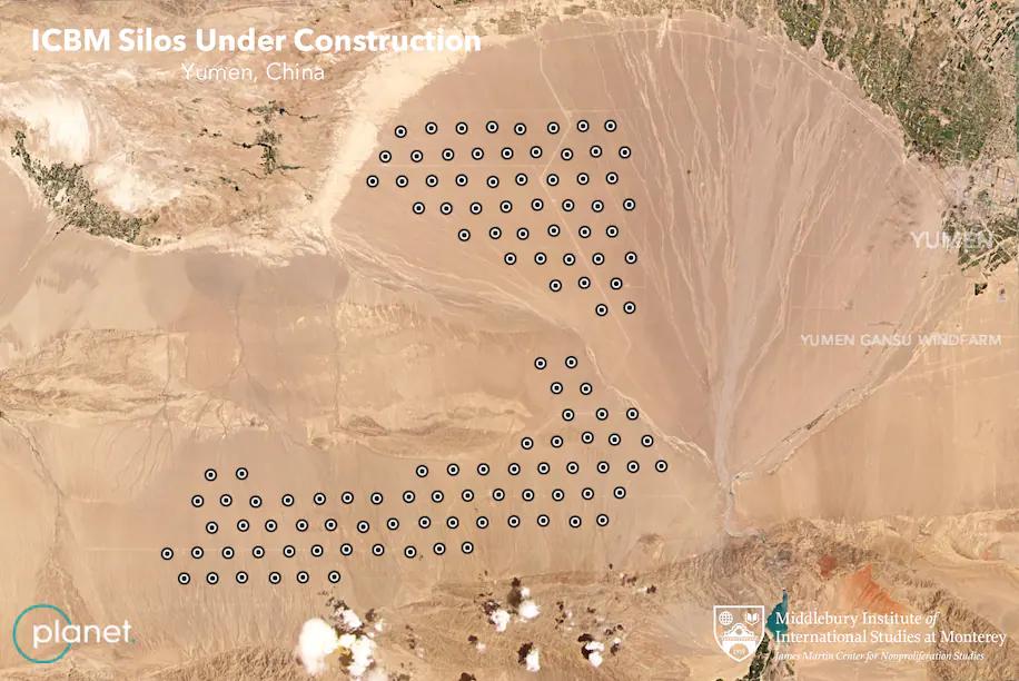 美国智库原因Plane商业卫星图声称,中国正在玉门建设119个核弹发射井 图源:社交媒体