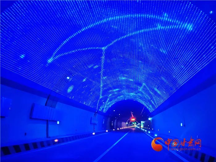 考虑到关山隧道较长,连续驾驶会产生视觉疲惫。平天高速的建设者在隧道中段布置LED灯带,选择柔和清新的光和图案,营造着星辰大海的氛围,给旅途带来一份惬意。