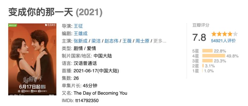 没有套路化的高冷校草、霸道总裁人设,主角的演技和整个故事又颇受好评,《变你》因此迅速冲进了年轻人占据主导的社交语境中,实现了热度与口碑的双丰收。
