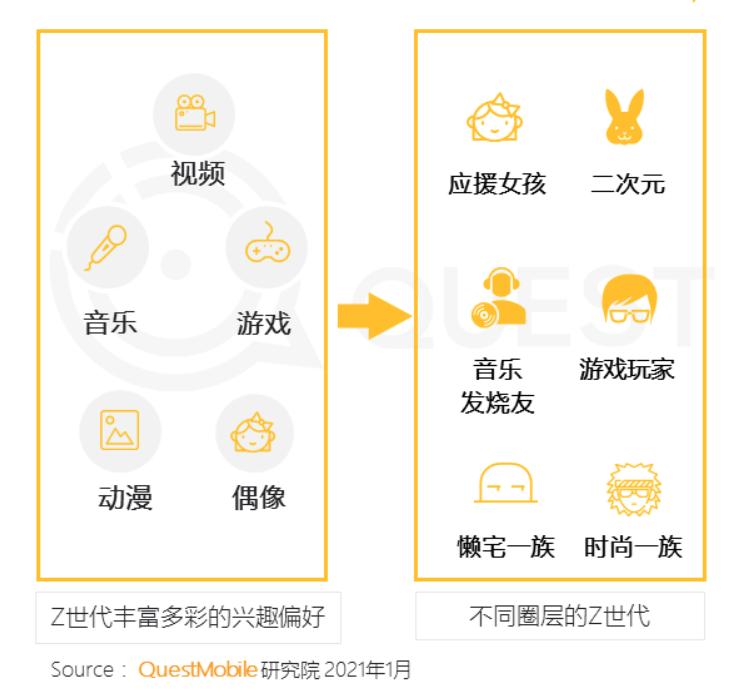 QuestMobile《2020年Z世代洞察报告》显示,随互联网兴起而成长的Z世代更注重“自我价值”与“兴趣爱好”,他们是愿意为兴趣付出时间和付费的一代。而随之分众化、圈层化趋势更加明显,年轻人的兴趣领域也更加多元化,不论小众大众均有发展潜力和空间。