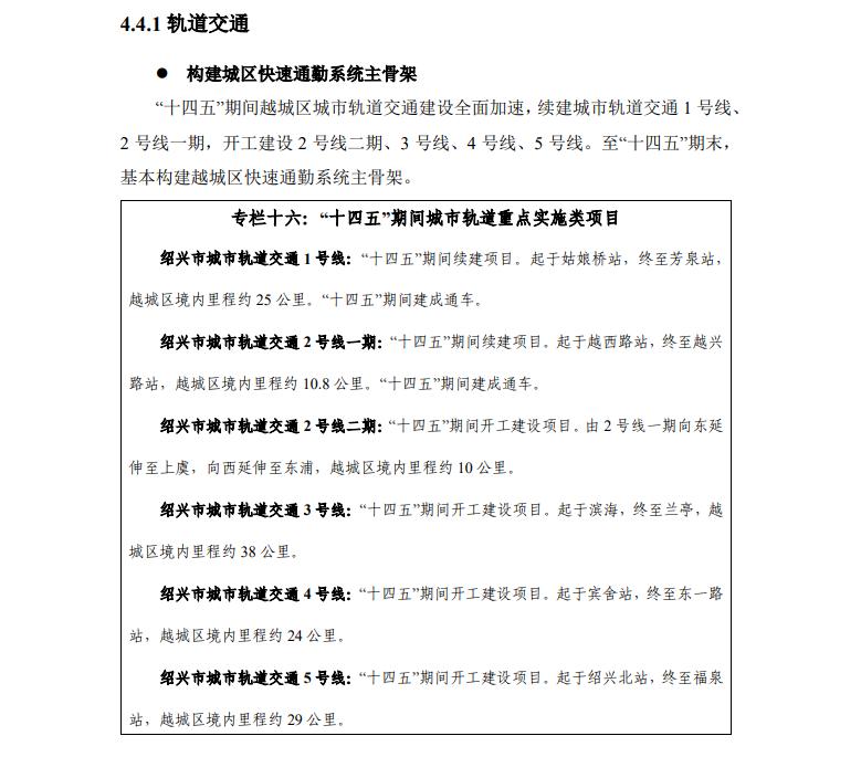 小布翻阅《绍兴市越城区综合交通发展“十四五”规划(公开征求意见稿)》全文发现,“轨道交通”方面的信息位于第4.4.1条,主要内容为: