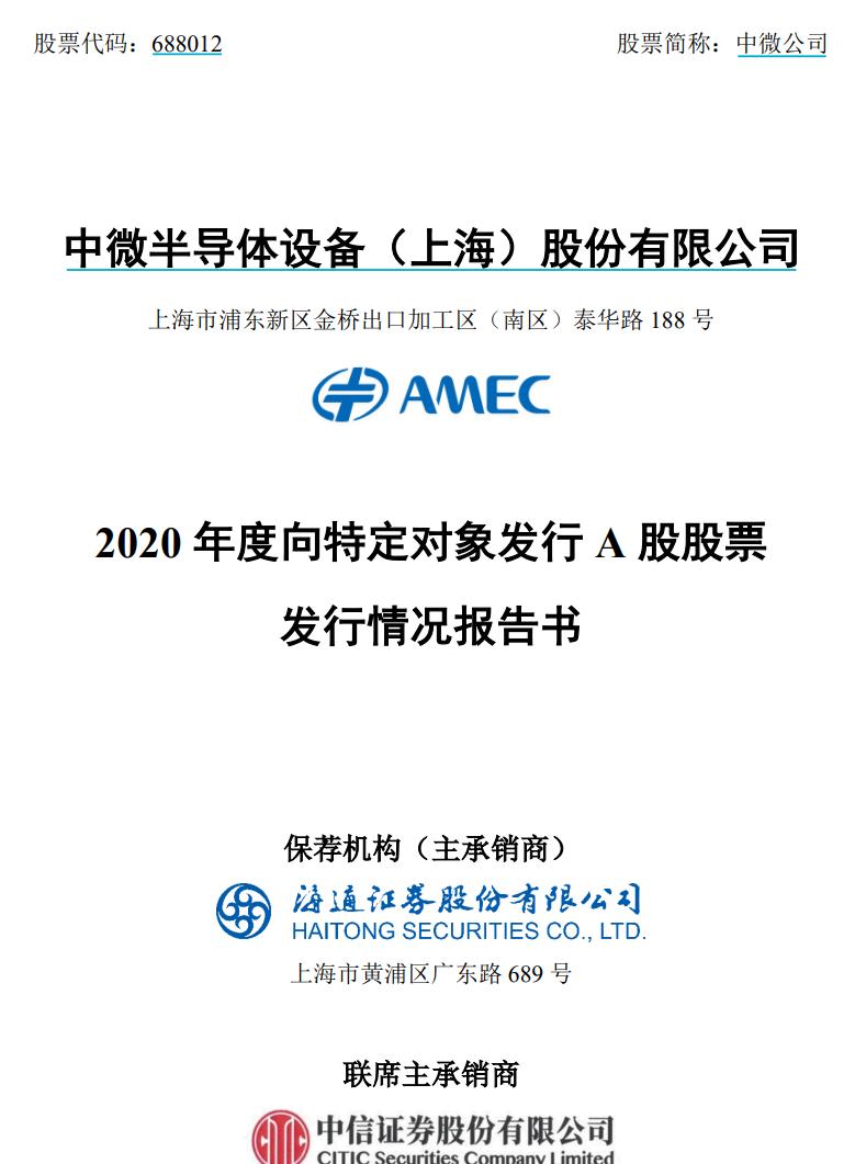 中微公司披露定增结果: