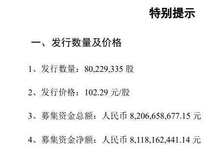 科创板半导体龙头,中微公司7月2日晚间公布定增情况报告书,募资总额82.1亿元,发行价格为102.29元/股!