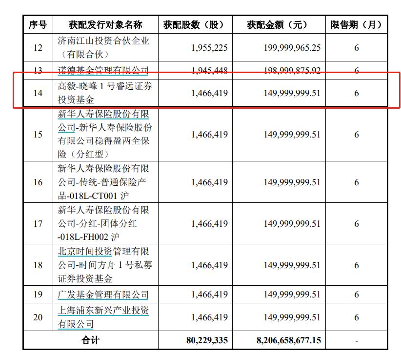 其中,国家集成电路产业投资基金二期股份有限公司(简称“大基金二期”)获配25亿元,中金公司获配4.06亿元,高毅旗下的大佬邓晓峰老师合计获配5.4亿元。