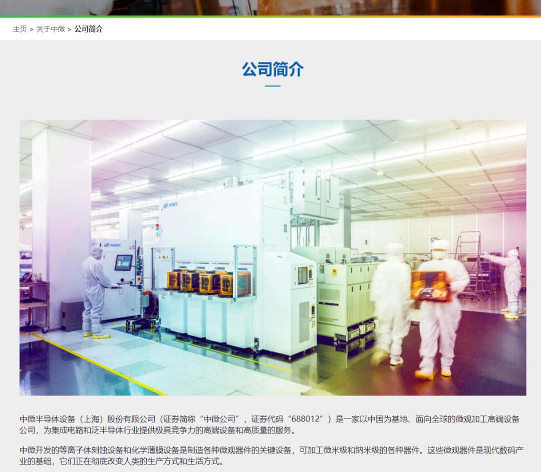 资料显示,中微公司是一家以中国为基地、面向全球的微观加工高端设备公司,为集成电路和泛半导体行业提供极具竞争力的高端设备和高质量的服务。