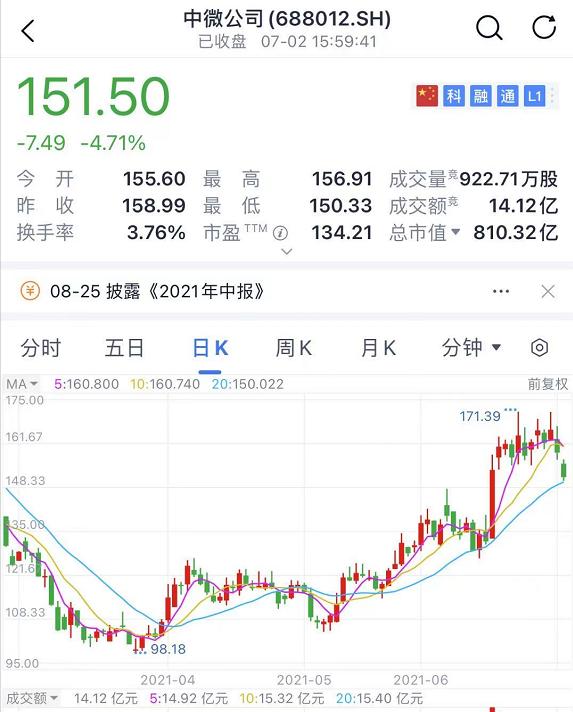 截至收盘,中微公司市值超800亿,股价报151.5元/股。近期从低点以来大涨了超50%。而从定增价102.29元/股算起,大基金这一出手就已经浮盈了近50%!