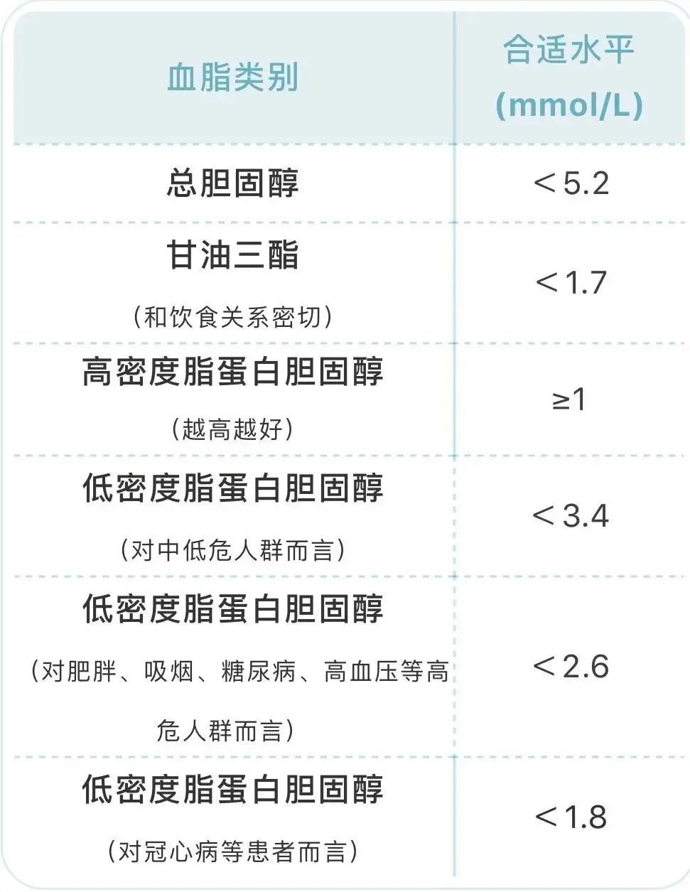 提醒:血脂中我们最首先关注的应该是“低密度脂蛋白胆固醇”,它的升高与冠心病最为密切!而且不同人群的“合适水平”是不同的,所以有些人化验单上没有表示升高的箭头,但依然需要用药治疗。