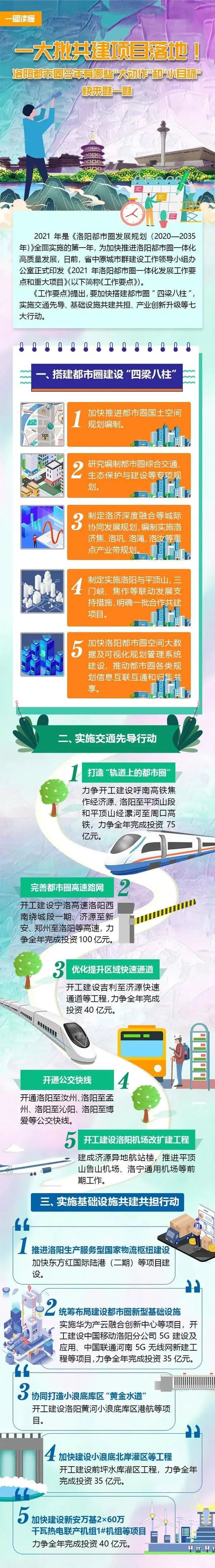2.统筹布局建设都市圈新型基础设施,实施华为产云融合创新中心等项目,开工建设中国移动洛阳分公司5G建设及应用、中国联通河南5G无线网新建工程等项目,力争全年完成投资35亿元。