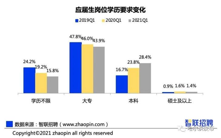 企业需求变化,也让硕士学历进入单位的比例增高,据调查,硕士学历进入单位的比例较本科学历高出近 20%。