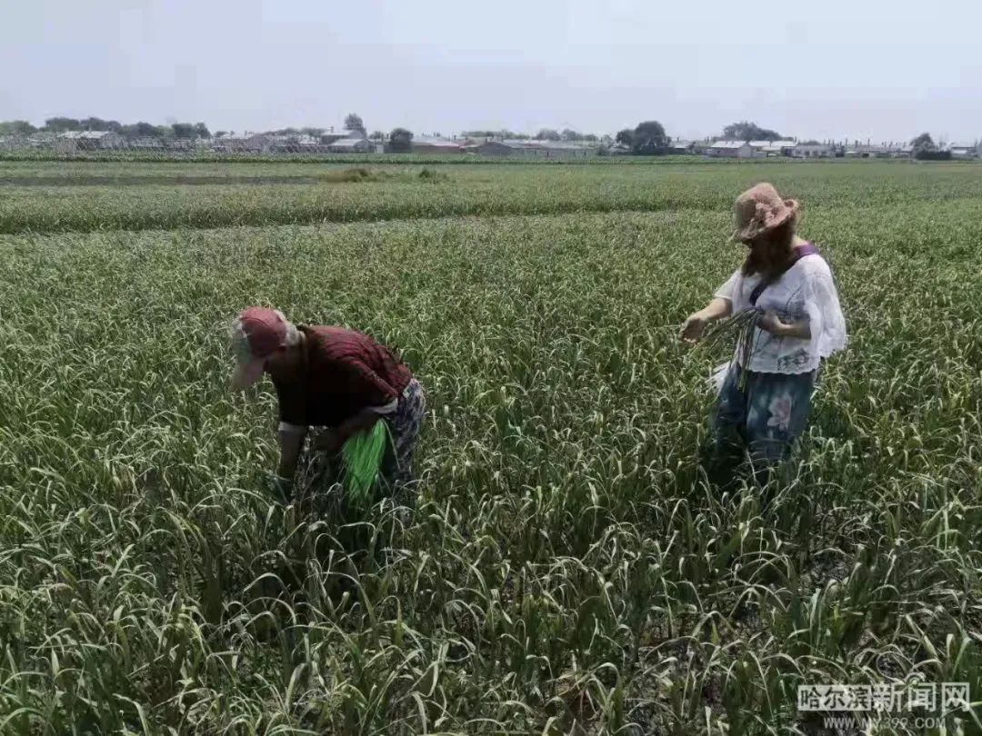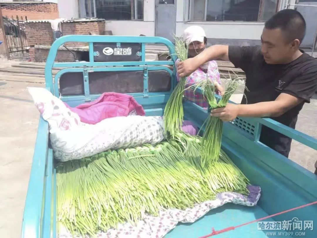在阿城区阿什河街道办事处白城村的蒜地内,刘广会正和家人一起抽蒜薹。刘广会介绍,他家今年种了3亩紫皮蒜,播种日期稍晚,抽蒜薹也就晚了几天。他家的地已经抽过一茬蒜薹了,现在蒜薹的价格不算低,每斤能卖到6元钱,有商贩来村里收购,销售根本不用愁。一亩地能产200多斤蒜薹,收入千余元。