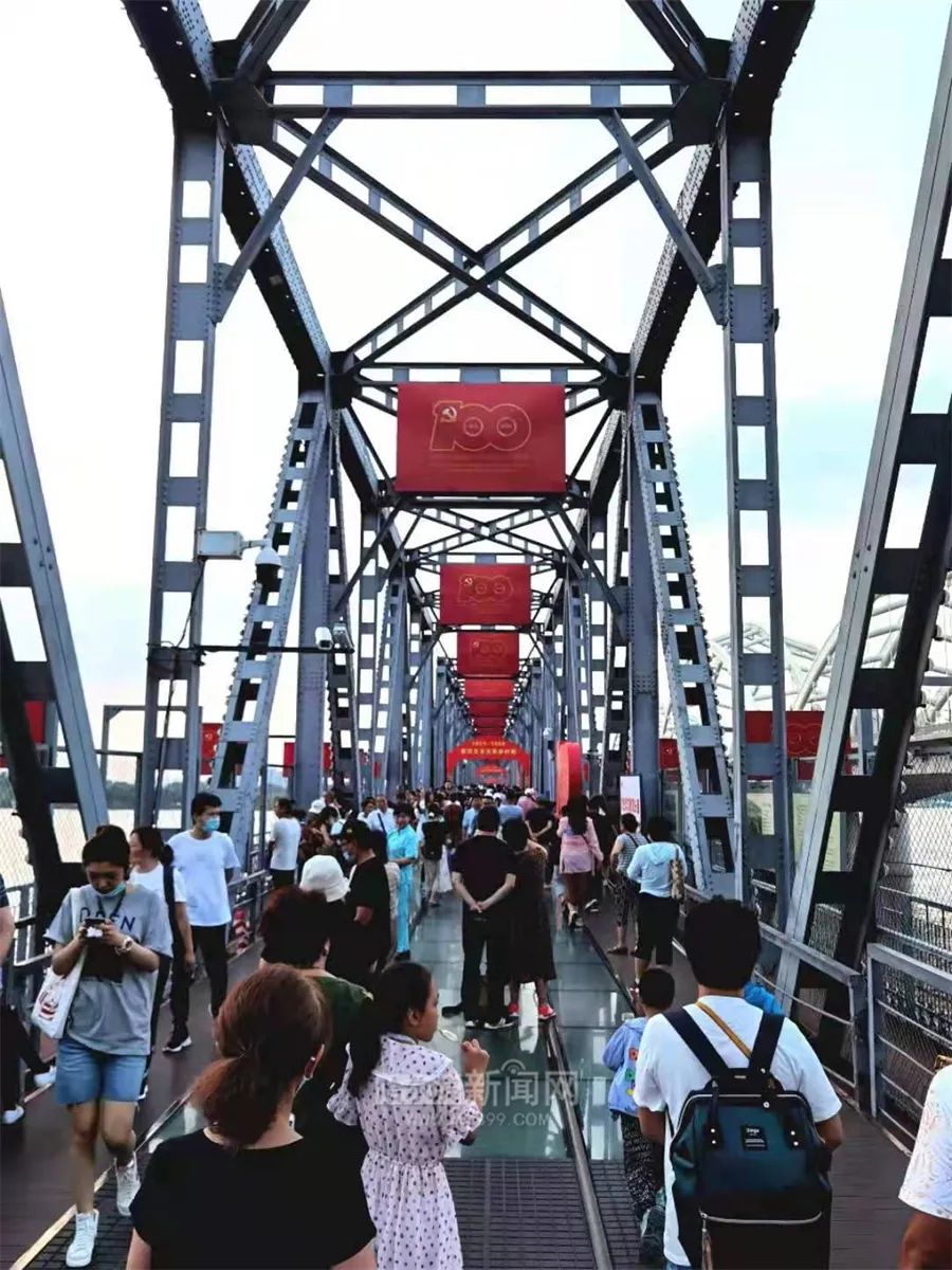 祝福声声,回荡在百年滨洲铁路桥上;红旗猎猎,传递冰城人对党的最美祝愿。在举国上下庆祝中国共产党成立100周年的喜庆时刻,在北国冰城哈尔滨,一座承载了历史与时尚的“老江桥”变身“祝福桥”,在众多央媒的关注下一度成为各大网络社交平台的宠儿。