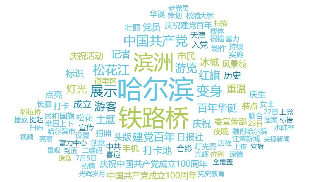 纵观“祝福桥”走红期间有关它的搜索关键词,“哈尔滨”“百年华诞”“祝福桥”等词语占据了绝大多数的比例。对于哈尔滨城市影响力的扩大,今年“七一”前后,“祝福桥”功不可没。