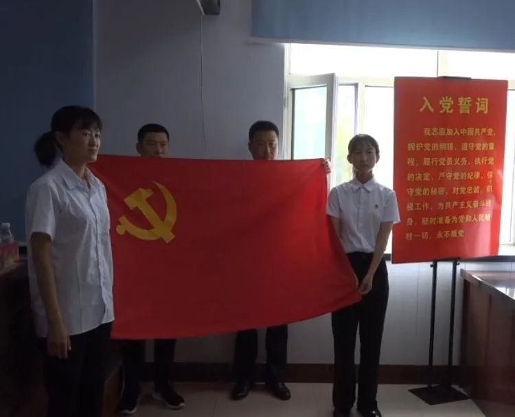 在新党员宣誓和老党员重温入党誓词环节中,全体党员面向党旗,用铮铮誓言表达了对党的无限忠诚。