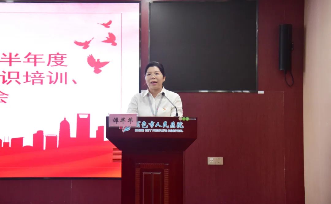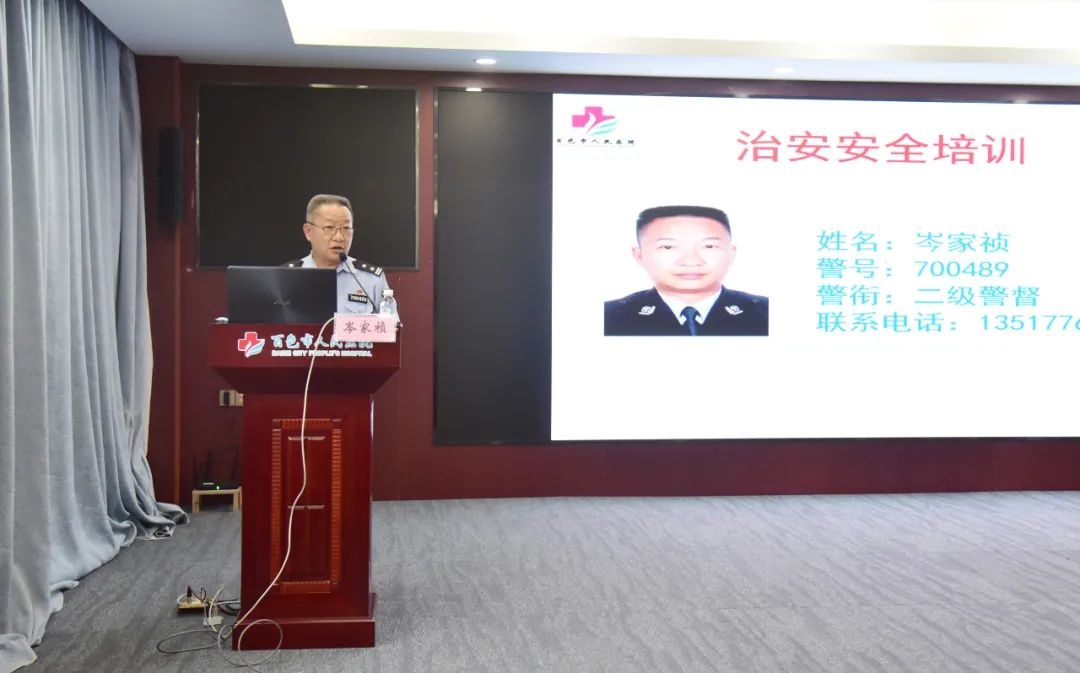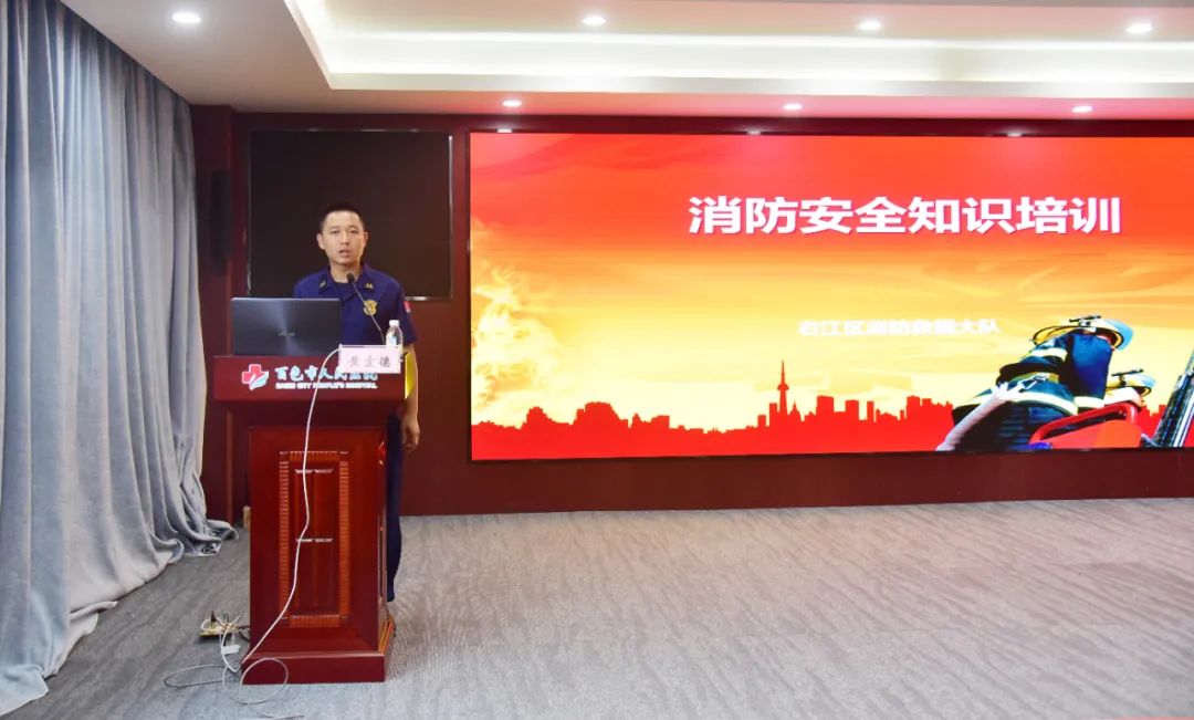 6月29日,百色市人民医院召开安全生产工作会议及消防安全知识培训暨消防安全实战演练,进一步做好医院安全生产管理工作,深入推进医院消防安全专项整治行动,加强医务人员消防安全知识和应急自救能力,营造安全就医环境。医院邀请右江区红城消防救援站站长黄宏德,右江区新兴派出所二级警督岑家祯进行消防安全及治安安全培训指导。院长陆晓生,副院长余贤恩、蒙以良,院长助理黎昇出席会议,全院科室主要负责人、安全协管员参加培训。活动由应急管理科科长谭芊芊主持。