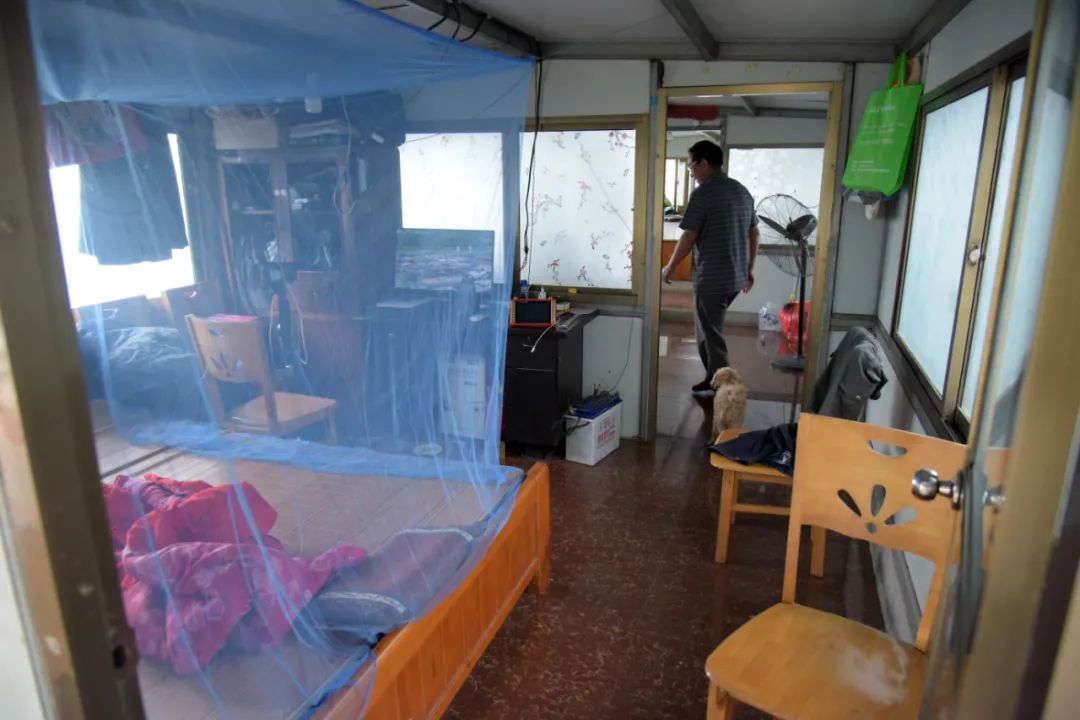 杨贵枝是唯一还生活在船上的窑湾渔民,考虑到锚定在岸边的船和收缴上来的渔网渔箱需要有人看管,镇上专门雇佣了他,每月工资2000元。