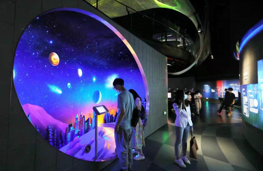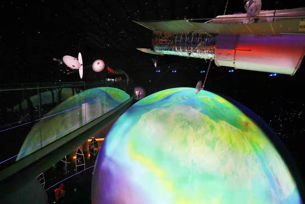 观众可以选择沿梯而上,也可以直接从一楼依次进入三大主题展区 “家园”“宇宙”“征程”。
