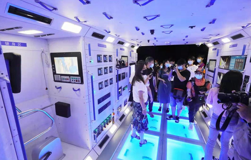 在核心舱内,观众还可以去真实地看一看宇航员们未来可能在太空中的生活和工作的场景,包括他们的起居、健身、洗浴、饮食等。