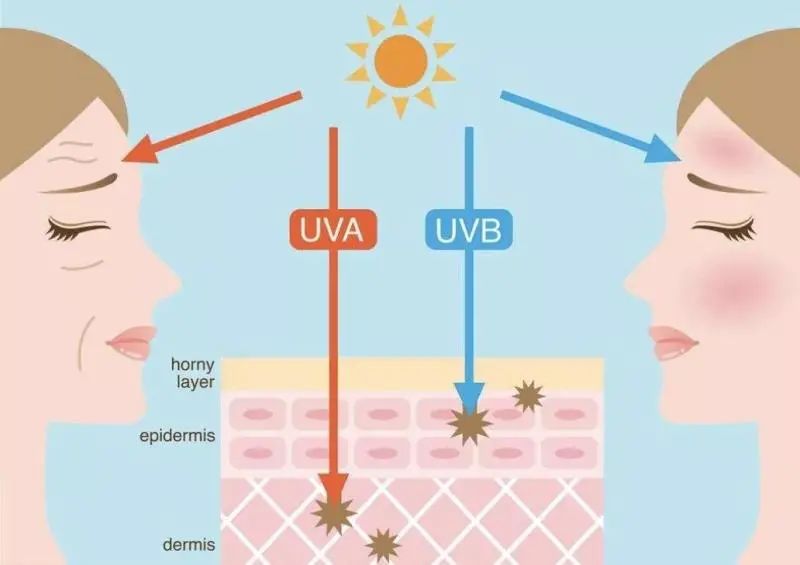 太阳光中破坏皮肤的“元凶”是紫外线,包括UVA(晒黑、晒老)和UVB(晒红、晒伤)。