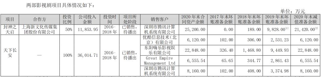 屋漏偏逢连夜雨,欢瑞的另一个项目《封神之天启》也因为政策原因不能播出。该剧曾以打包的形式出售给腾讯视频,涉及内容为《封神之天启》《青云志3》《盗墓笔记2》,销售额共计8.4亿元。其中,《封神之天启》在销售完成后,合同资产余额为2.52亿元。如今,相关金额也将悉数清零。