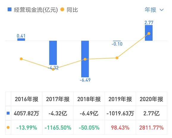 随着欠款数额越来越多,欢瑞世纪的资金裂缝也将越来越大。财报数据显示,2017年-2019年,欢瑞世纪的现金流一直为负。