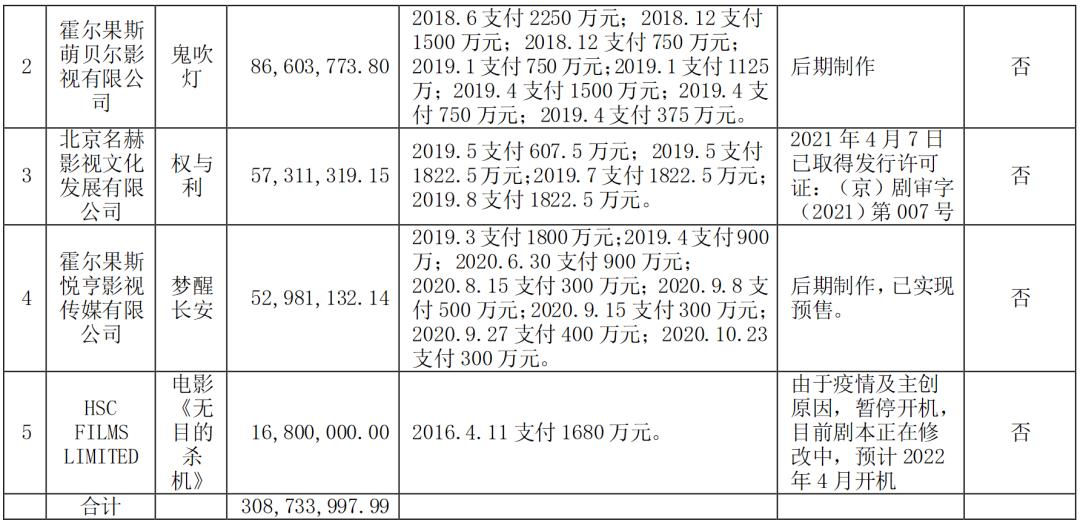 另外,欢瑞世纪已经售出的项目中,包括《天乩之白蛇传说》《秋蝉》等项目并未如约拿到回款,其中欠款三年以上的金额已超4亿,且全部计提坏账。
