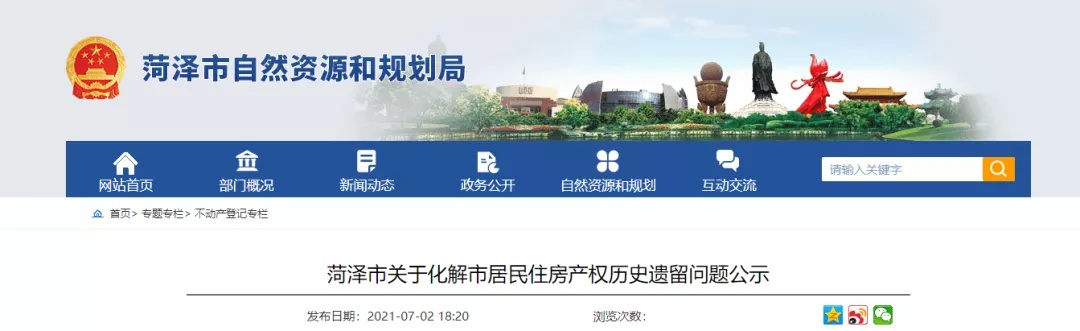 我单位按照《菏泽市人民政府办公室关于化解市居民住房产权历史遗留问题的实施意见》(菏政办字【2021】12号)规定的程序和菏泽市人民政府《化解市区居民住房房产历史遗留问题专题会议纪要》(第14期)的要求及菏泽市化解市区居民住房产权历史遗留问题办理决定书(第一期),现对以下小区进行公示,如有异议,请于本公示之日起15个工作日内向黄河路政务服务中心不动产登记中心书面提出,电话:5559192。逾期无异议或者异议不成立的,我单位将办理该不动产权登记手续。