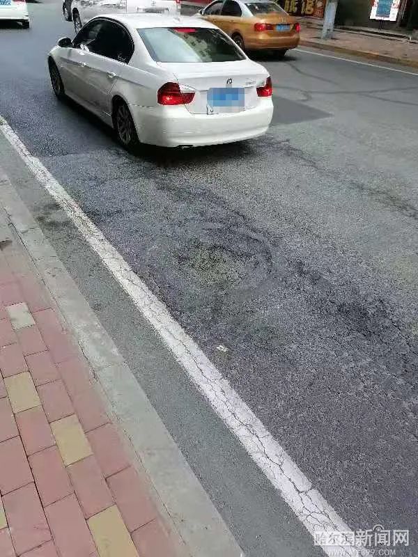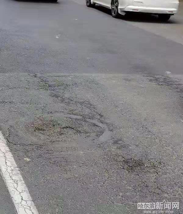 6 日上午,记者根据市民反映的情况来到香坊区公滨路373号附近路段发现,短短20米路段内存在多处破损翻浆情况,其中最大的破损处直径超过50厘米。