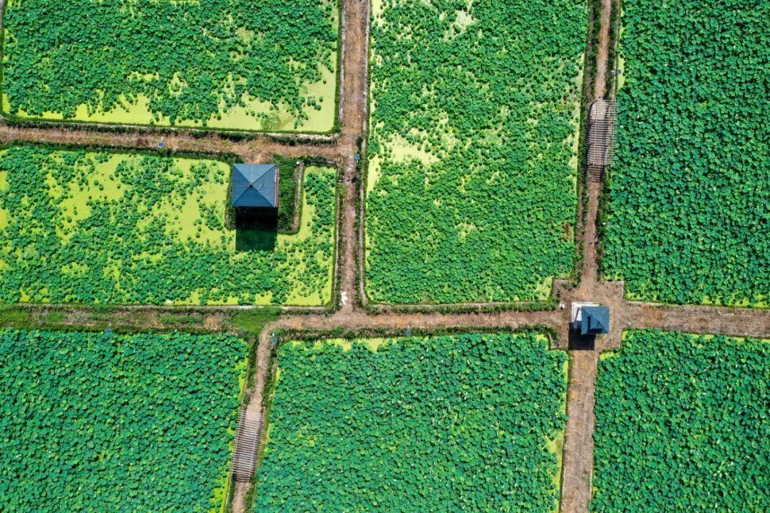 7月3日拍摄的济南章丘区白云湖街道苏码村的千亩荷塘。新华社记者 朱峥摄
