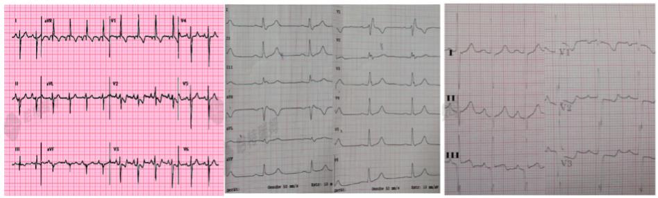 图4:不同时期的心电图V1“兔耳征”