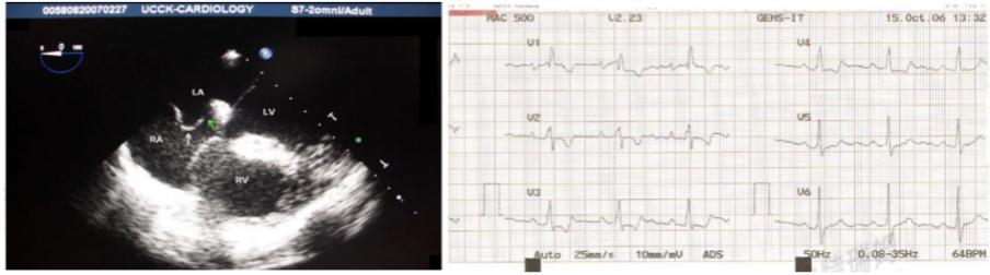 同时,不完全右束支阻滞提示房间隔缺损面积较大。如图15示:42岁中年女性,心电图示:右束支阻滞;心脏超声提示:卵圆孔未闭:4.5mm。