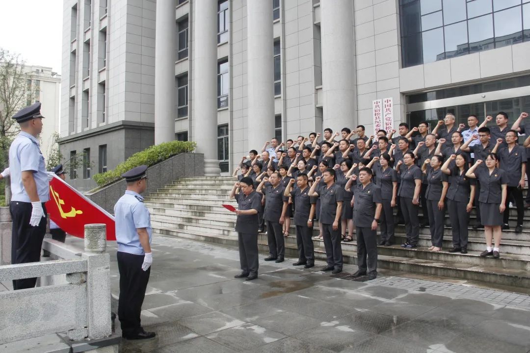 重温一次入党誓词。7月1日,全体党员干警重温入党誓词。激励他们牢记初心使命、坚定理想信念、传承红色基因、赓续红色血脉,发扬伟大建党精神,充分发挥党员先锋模范作用,继续为实现人民对美好生活的向往不懈努力、奋发作为。