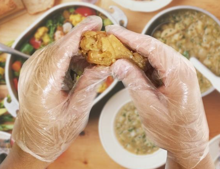 此时,如果我们使用了PE手套这类一次性手套,就能有效隔绝手上的细菌,降低食品污染发生的概率。