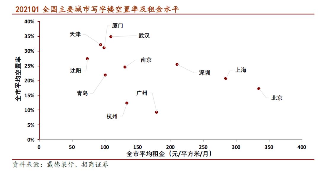 数据显示,2020年以来,一二线城市写字楼空置率创下新高,除了广州等个别城市外,大多数一二线城市空置率都在20%以上。