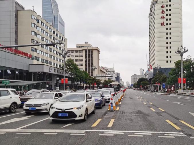“为打通交通瓶颈,提高通行效率,昆明市公安局交警支队按照“一点一策,一路一策”的思路,加强分析研判,结合“路、点、段”交通特点和通行情况,因地制宜、有针对性地解决交通“潮汐”流问题。自2021年7月5日起,在交三桥路口(北京路与人民路交叉口)南口设置了“潮汐车道”,这也是昆明首条“潮汐车道”。