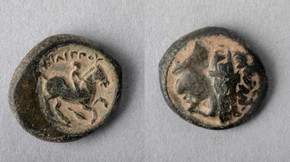 马其顿国王菲利普二世,为庆贺其在古希腊举办的古代奥林匹克运动会上取得骄人战绩而特别制作的纪念铜币。