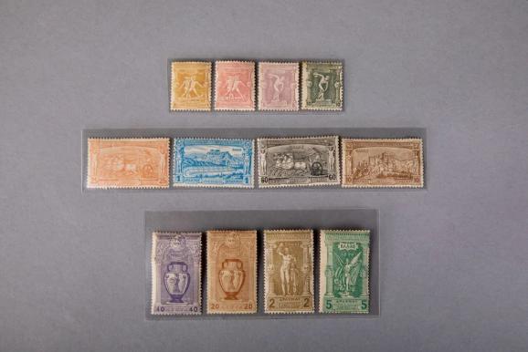 这是1896年第一届夏季奥运会邮票,它是世界上第一套体育邮票。这套邮票堪称是见证现代奥运会开创的历史文物,被收藏人士誉为“奥运活化石”。但是,这套邮票发行的起因,却是奥运经费不足,借此来筹集资金。