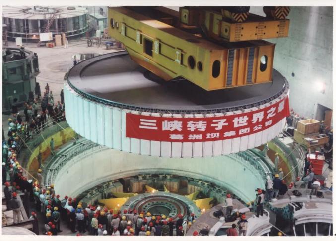 ▲2003年,在三峡左岸电站世界单机容量最大的机组安装中,中国能建葛洲坝集团承担安装的的四台机组,累计提前工期528天投产发电。