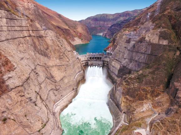 ▲世界最薄的双曲拱坝乌东德水电站大坝