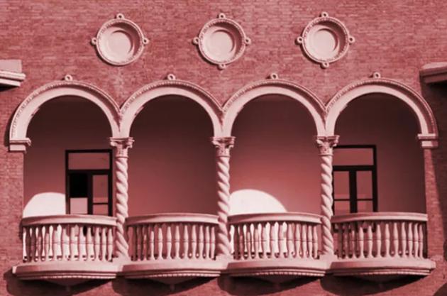 该处为两层意大利式小楼,罗马风格。房屋混合结构,红砖墙面,红色瓦顶,二楼三面建有不同形式的阳台,各呈其妙,特别是四联拱券扇形阳台十分别致,在天津小洋楼中独树一帜。