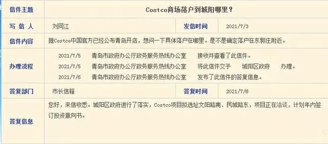 5月31日,再次从城阳区招商促进中心咨询,了解到:目前Costco开市客项目方正在青岛市多个区市进行考察选址,项目最终选址将由项目方根据考察情况确定。城阳区也将与项目方积极沟通,争取项目落户城阳。