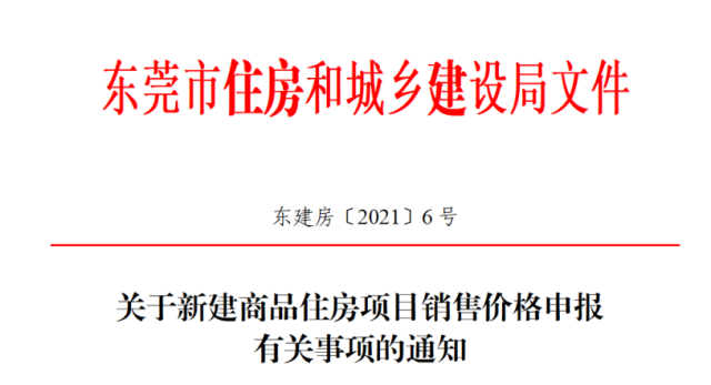 7月9日,东莞市住建局出台《关于新建商品住房项目销售价格申报有关事项的通知》(以下简称:《通知》),《通知》规定,对下一年度首次销售的新建商品住房项目的申报价格,将参照同区域、同地段当前同类型项目的申报价格及网签价格,结合房价调控目标审核确定。
