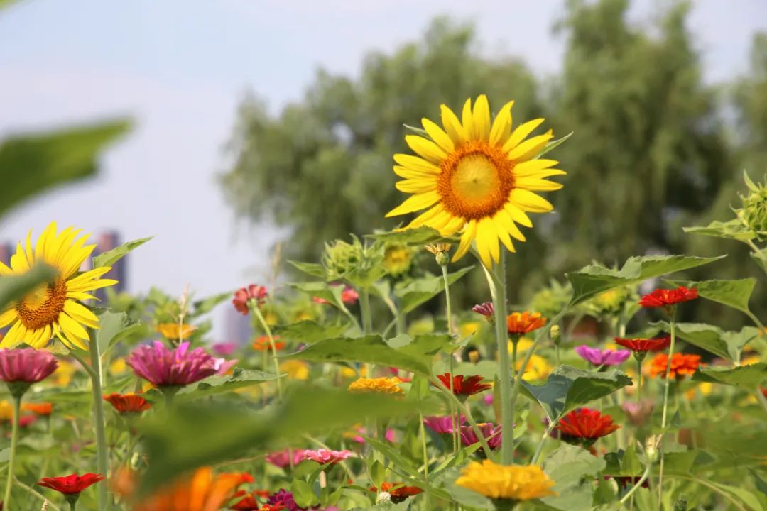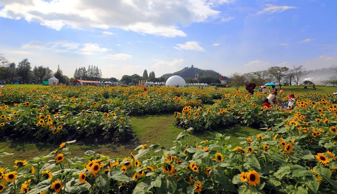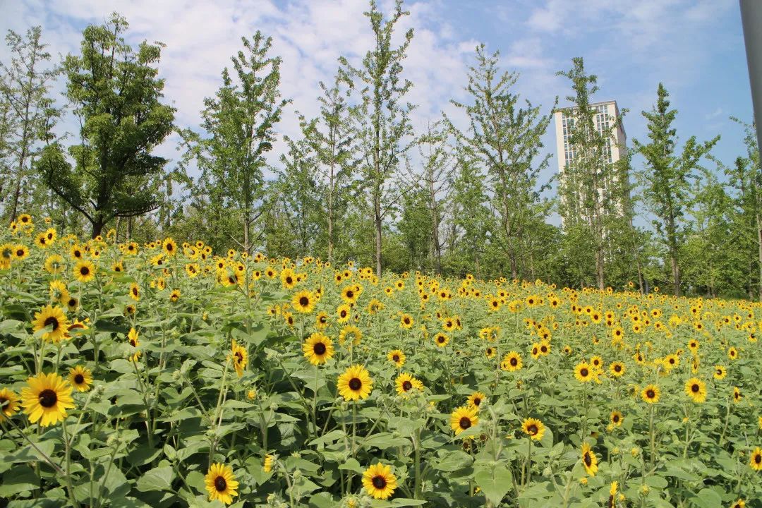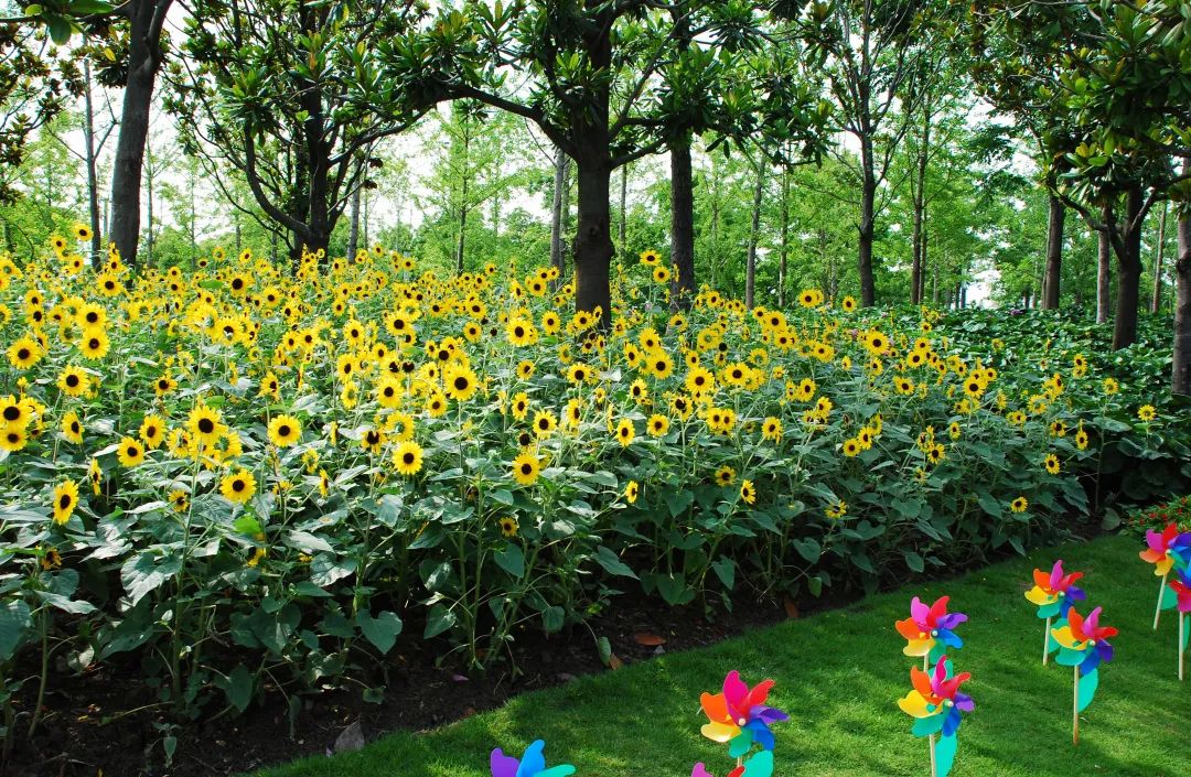 此外公园内山门阁以及五岔路口均有种植观赏性向日葵,共计种植一万五千株左右,可分散观赏哟~