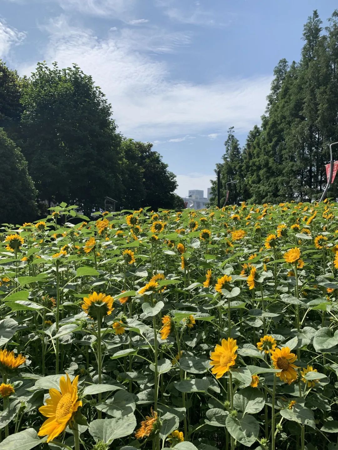 在闵行体育公园的儿童乐园和三号门附近,向日葵娇艳开放。阳光下,金色的向日葵在风中摇曳,宛如波浪荡漾的金色海洋。花海中还贴心得设置了一些小道,拍照打卡更方便咯~
