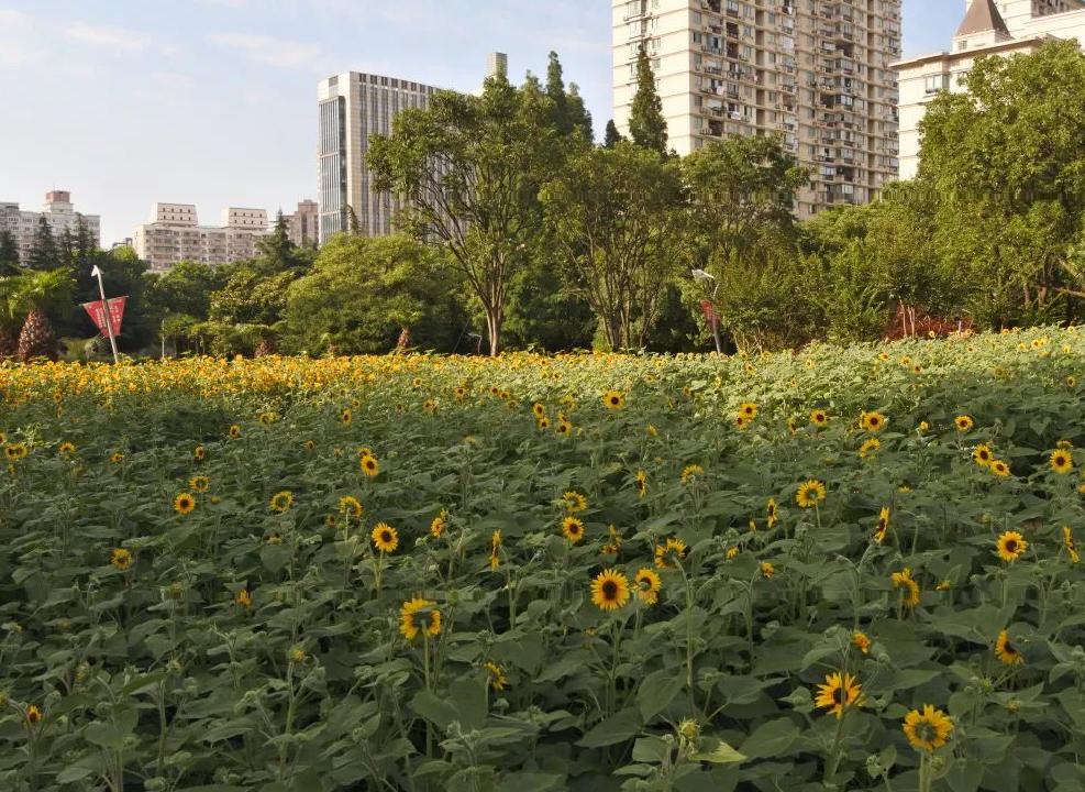 缤纷夏日,黄浦区南园滨江绿地的向日葵迎来了盛开季,16000余株向日葵争相绽放,放眼望去呈现出一大片金色海洋。南园滨江绿地分别种植了 “金富贵”“无限阳光”两个品种的向日葵,种植面积为1815平方米,中心花坛种植共计7100株。园内金色的花海,在蓝天下蔚为壮观,面向骄阳,热情奔放。