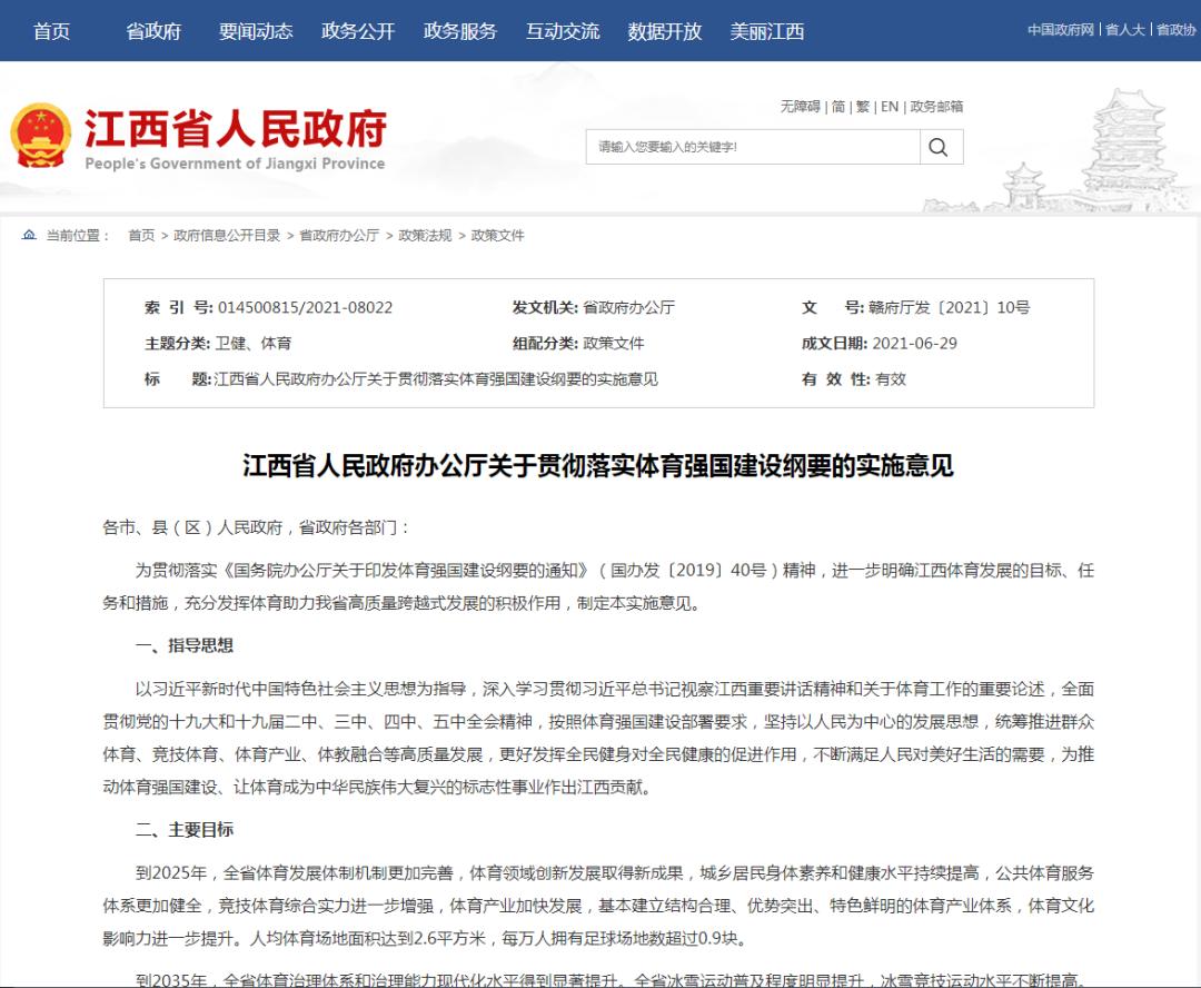 ▶全市政法队伍教育整顿总结大会暨“回头看”部署会召开▶徐鸿调研矿山整治工作▶刚刚!全国百余所大学在赣提前批投档分数线公布!速看!为贯彻落实《国务院办公厅关于印发体育强国建设纲要的通知》精神,江西印发《江西省人民政府办公厅关于贯彻落实体育强国建设纲要的实施意见》(以下简称《意见》),进一步明确江西体育发展的目标、任务和措施。