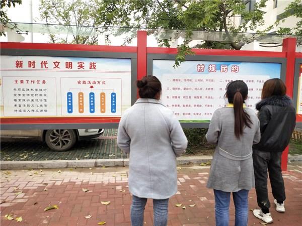 吉木萨尔县北庭镇古城村村民仔细观看公示栏里的村规民约
