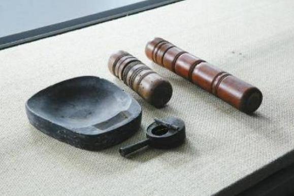 在陈毅纪念馆里,记者看到了一方椭圆形的石质砚台。砚台造型古拙,深凹的砚池被磨得均匀细腻。常年在陈毅纪念馆文物博物部从事文物保护工作的唐铭泽告诉记者,这方砚台和笔筒、墨盒一道,都是幼年陈毅在乐至念私塾时的文具。从5岁入学,到7岁随家人离开乐至,两年时间里,陈毅每天正是用它们来写字、读书。